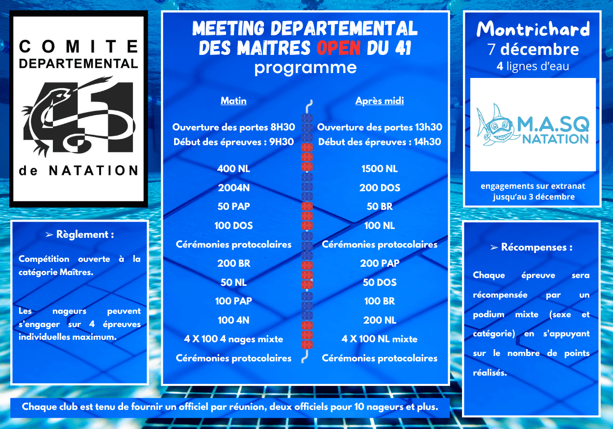 Une belle délégation blésoise se déplacera à Montrichard (10 nageuses et 8 nageurs).