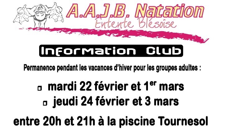 Celle de Jeudi 24 février de 20h à 21h à la piscine Tournesol aura bien lieu.