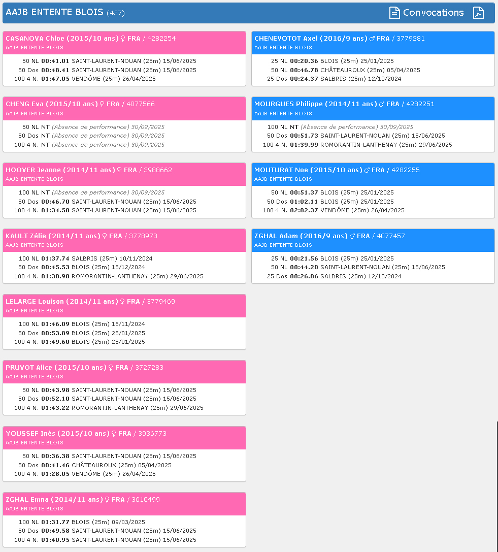 - le live FFN pour consulter le déroulement de la compétition en direct.