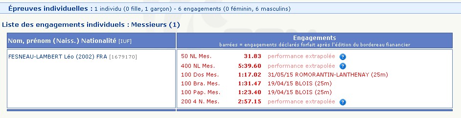 - Les benjamins 12 et 13 ans => live FFN - programme - engagements blésois.
